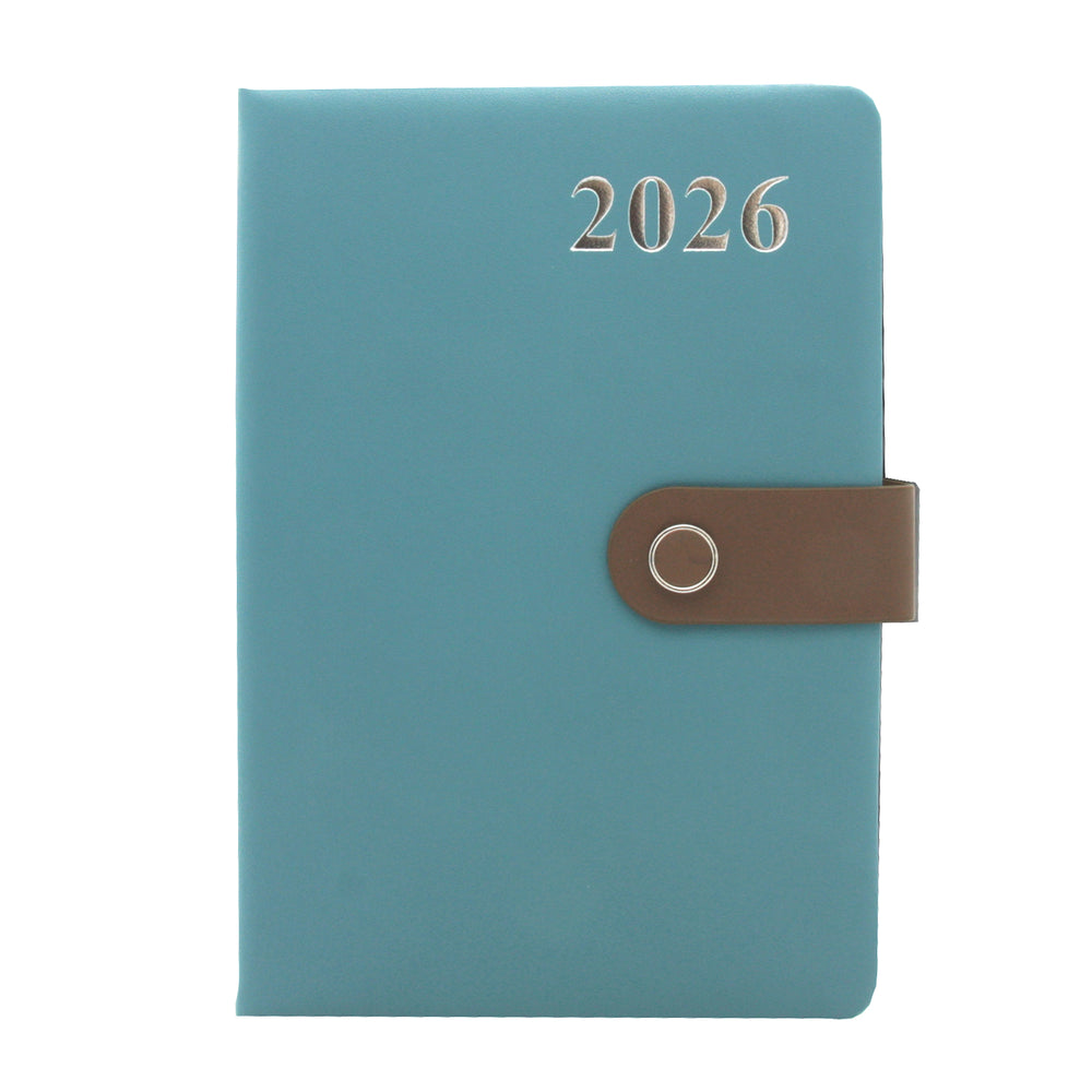 This 2026 Diary (26B) is designed for everyday organisation — featuring a soft-touch leather-look cover, convenient strap closure, and compact size perfect for work, school, or travel.